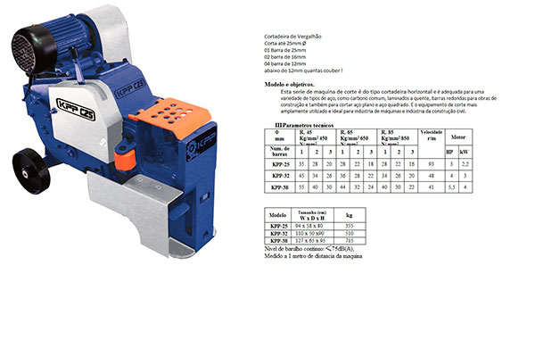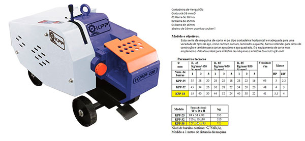 Cortador de vergalhão MeccaL tem basicamente 3 tamanhos cada um com sua cacidade de corte limitada até a bitola máxima de vergalhão : até 25mm de diâmetro, até 32mm de diâmetro ou até 38mm de diâmtero todos para aço CA-50.